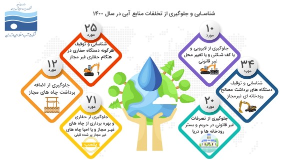 اینفوگراف از عملکرد شرکت در شناسایی و جلوگیری از تخلفات منابع آبی در سال 1400
